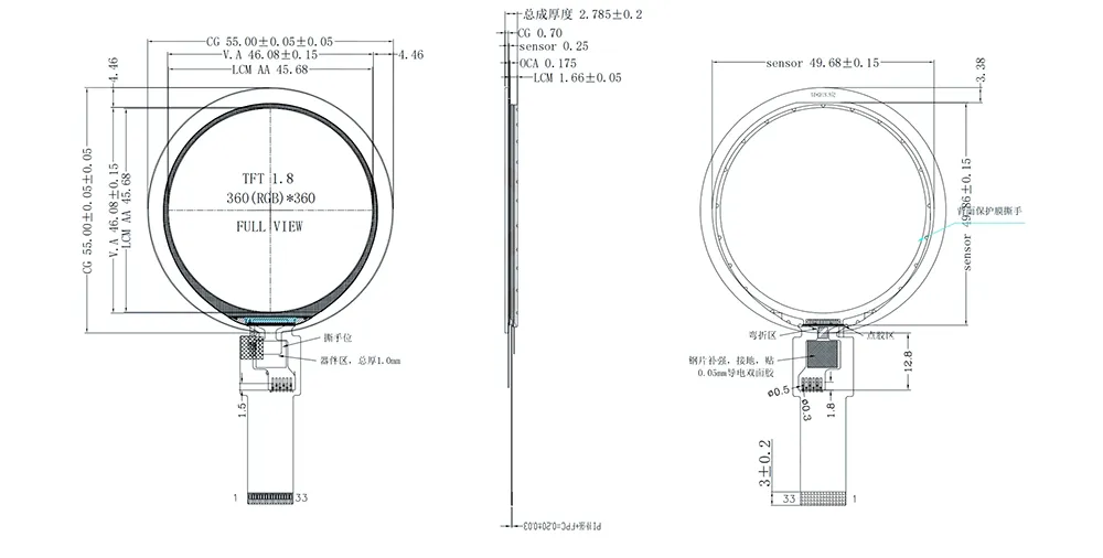 | Omtrekgrootte | 55(H)*55(V)*2.785(T) | Aanraakinterface | IIC |
